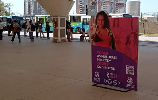 Os dez terminais do Transcol e as estações do Aquaviário recebem a campanha “Todas as Mulheres. Todos os Direitos”.