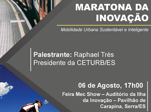 O diretor-presidente da Companhia Estadual de Transportes Coletivos de Passageiros do Estado do Espírito Santo (Ceturb-ES), Raphael Trés, vai ministrar a palestra de abertura da Maratona da Inovação, que acontece na 12ª Feira da Metalmecânica, Energia e Automação (MecShow 2019). O evento tem início nesta terça-feira (06), no auditório da Ilha da Inovação, no Pavilhão de Carapina, na Serra, e vai até a quinta-feira (08).