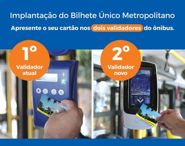 O sistema de Bilhetagem Eletrônica dos sistemas municipais de Vitória e de Vila Velha (Sanremo e verdinhos) está sendo modernizado e preparado para a implantação do Bilhete Único Metropolitano. Ao apresentar o cartão nos dois validadores, no período de 20 de julho a 16 de agosto, todos os dados do usuário, incluindo os créditos existentes vão migrar para o novo sistema. Isso vai evitar que o usuário precise trocar o seu cartão.