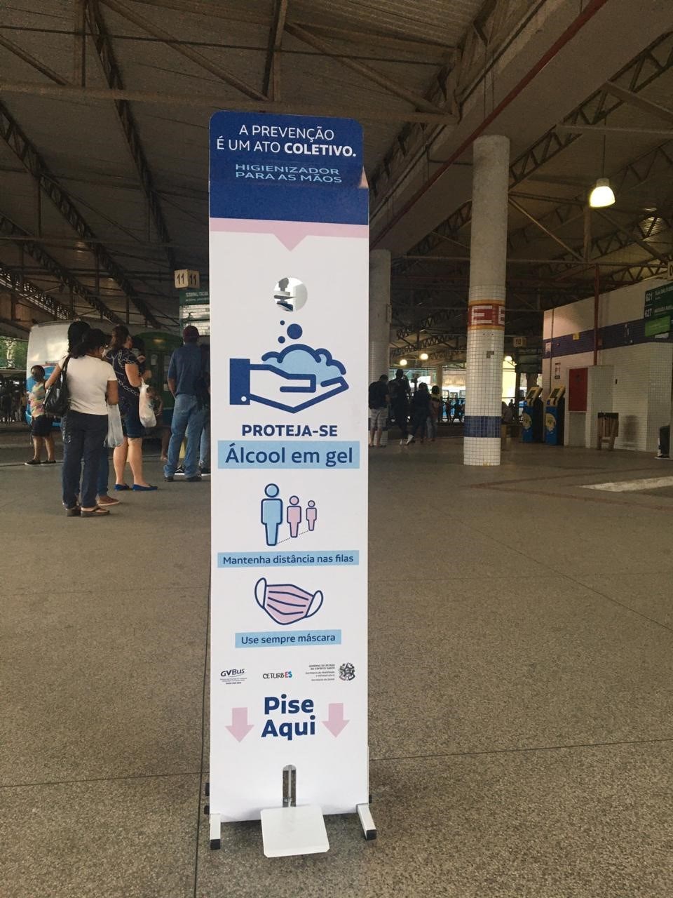 A Secretaria de Mobilidade e Infraestrutura (Semobi) e a Companhia de Transporte de Passageiros do Espírito Santo (Ceturb-ES) adotam mais uma medida para conter a propagação do novo Coronavírus (Covid-19). Os terminais do Sistema Transcol começaram a receber totens com álcool gel para utilização pelos passageiros. Ao todo, 100 totens serão instalados até o fim desta semana.