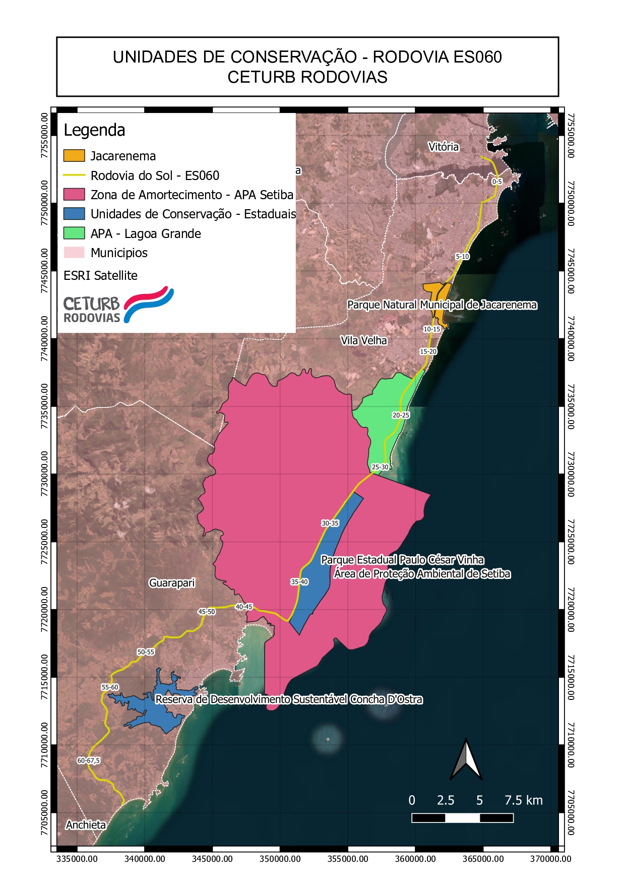 Além disso, em razão das reservas existentes busca-se cada vez mais uma rodovia sustentável, e por isso a Ceturb-ES prioriza em suas ações a preservação do meio ambiente, por meio de medidas de gestão consciente. Entre essas ações destaca-se o gerenciamento ambiental dos recursos sólidos gerados ao longo da Rodovia do Sol (ES-060), o monitoramento e apoio no combate a incêndios, com o mapeamento dos pontos de ocorrências na via, além do monitoramento da fauna local.