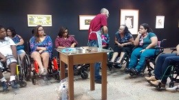O gerente de Atendimento ao Usuário, Gilmar Pahins Pimenta, ressalta que a ação, realizada em parceria com a Galeria Homero Massena, faz parte do projeto Conhecer com o Mão na Roda que leva os cadeirantes a pontos turísticos e espaços públicos da Grande Vitória. “O Conhecer com o Mão na Roda já é realizado desde 2012 e possibilita aos cadeirantes participar de diversas atividades no dia a dia”, explica.