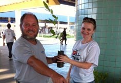 Troca de lixo eletrônico por mudas de plantas nos terminais